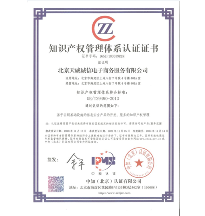 • 知識(shí)產(chǎn)權(quán)管理體系認(rèn)證證書