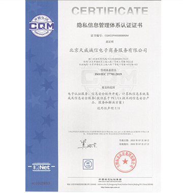 • ISO/IEC27701隱私信息管理體系認(rèn)證證書