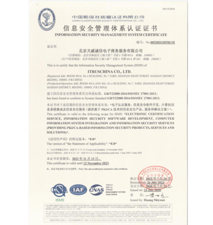 • ISO/IEC27001信息安全管理體系認(rèn)證證書