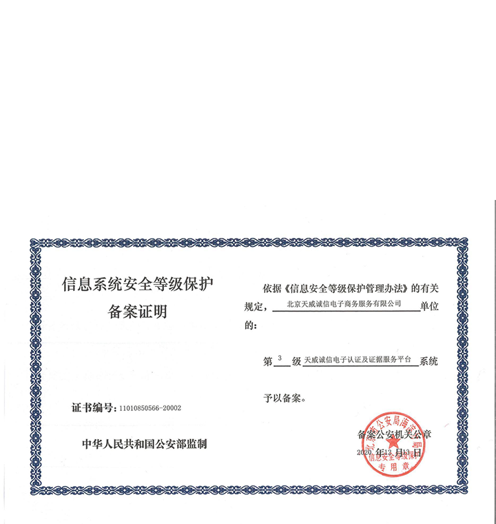 • 信息系統(tǒng)安全等級(jí)保護(hù)備案證明3級(jí)
