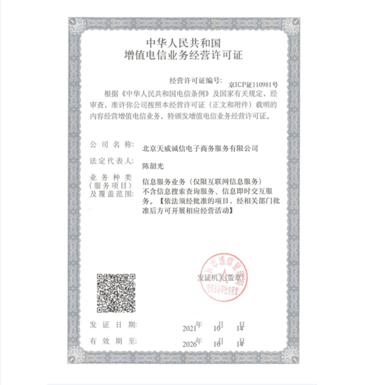 • 增值電信業(yè)務(wù)經(jīng)營(yíng)許可證