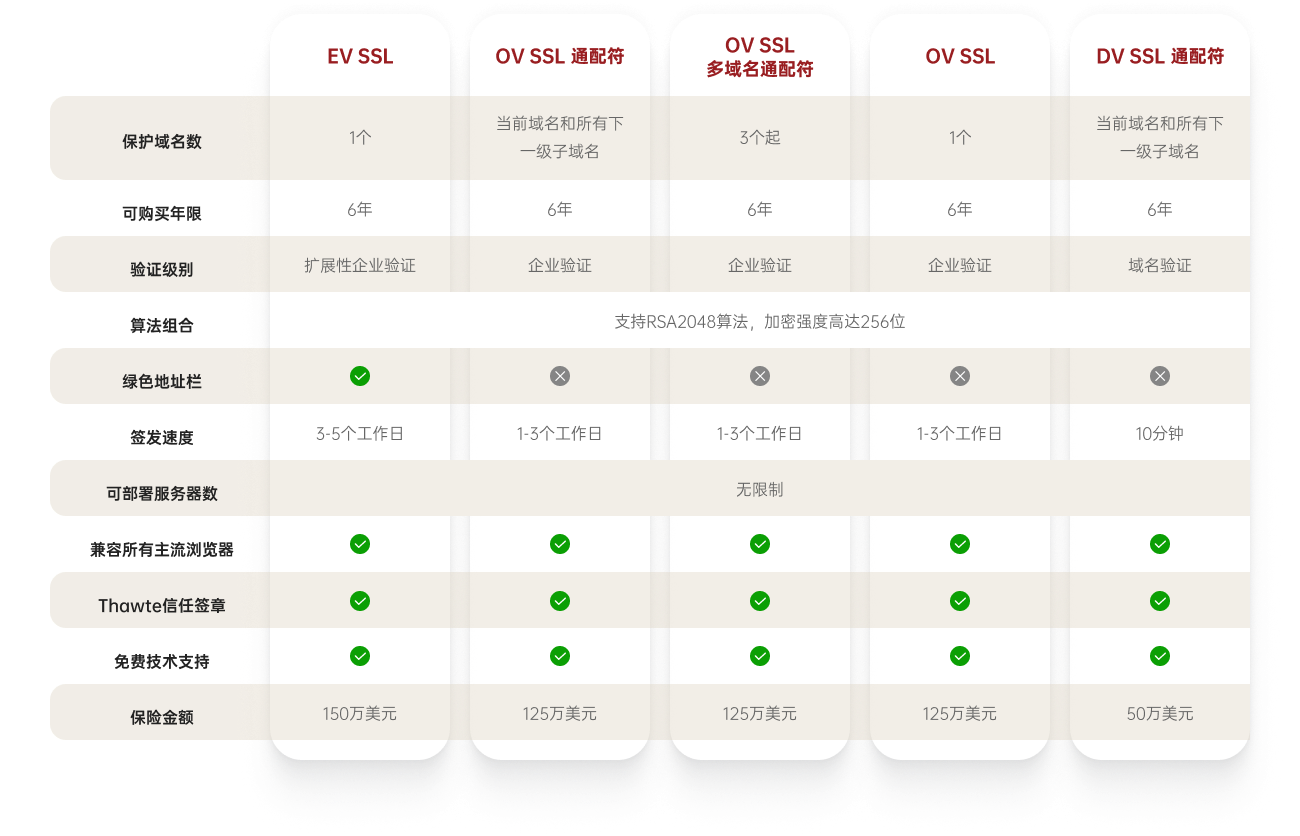 Thawte 證書對(duì)比