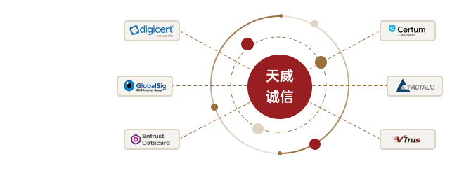 天威誠信旗下接入多家全球知名CA機構(gòu),如Digicert,Globalsign,Certum,Actalis,vTrus等,只需通過天威誠信即可享受全球最先進的SSL證書服務(wù)。