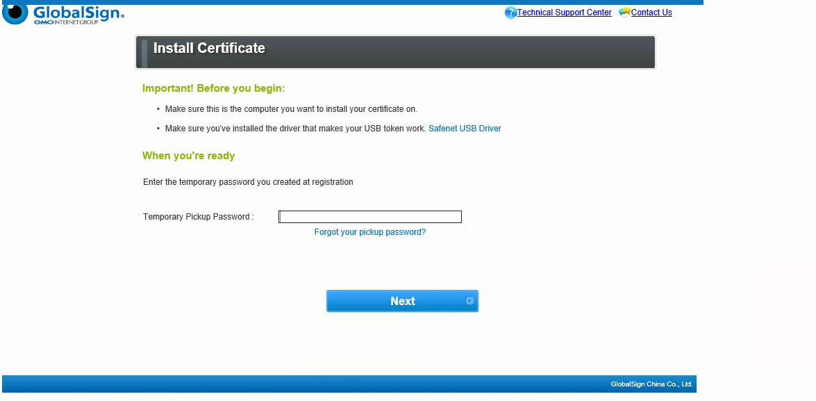 點(diǎn)擊Next下一步后,提示輸入初始化時設(shè)置的eToken密碼,輸入錯誤會導(dǎo)致下載失敗。