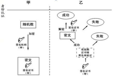 如果需要確認(rèn)甲的身份是否和證書所申明的身份一致,則需要執(zhí)行身份認(rèn)證過(guò)程,如前一節(jié)所述。