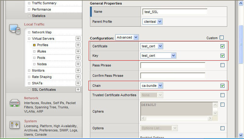 完成證書的導(dǎo)入和profile 的設(shè)置后,還需要在Virtual Server下設(shè)定Properties。將Clent Server和剛才產(chǎn)生的Profile捆綁一下,點(diǎn)擊Update即可完成證書的配置了。