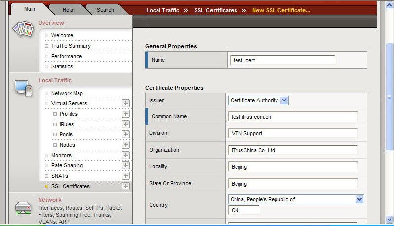 選擇Local Traffic-〉SSL Certificates-〉Create