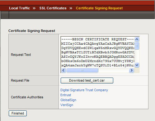 點(diǎn)擊Finished完成證書請求操作。