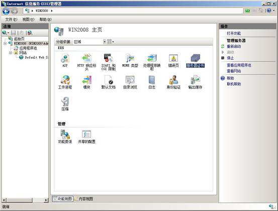 進入IIS管理控制臺,并選擇“服務(wù)器證書”