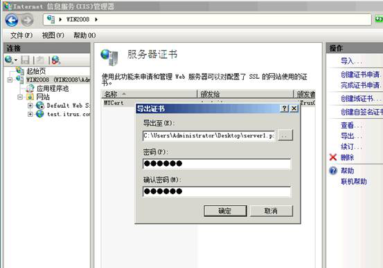 輸入導(dǎo)出的密鑰文件文件名、存儲路徑:,并為導(dǎo)出的pfx格式證書備份文件設(shè)置保護密碼