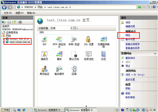 選中需要配置證書的站點,并選擇右側(cè)“編輯站點”下的“綁定”