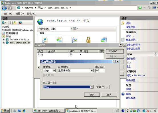 指派站點證書,點擊”確定” ,服務(wù)器證書配置完成!