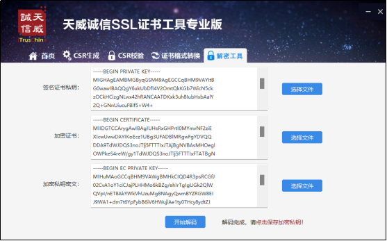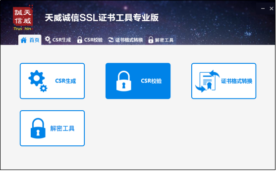 天威誠信SSL證書工具專業(yè)版,集CSR生成、CSR校驗、證書格式轉(zhuǎn)換和解密工具于一體,在客戶端上即可完成CSR 在線自動生成并能快速校驗CSR信息,實現(xiàn)不同證書間的格式互轉(zhuǎn),快速有效的檢測出證書的安裝狀態(tài),操作簡單,易于上手,是SSL證書安裝使用過程中不可或缺的得力干將。