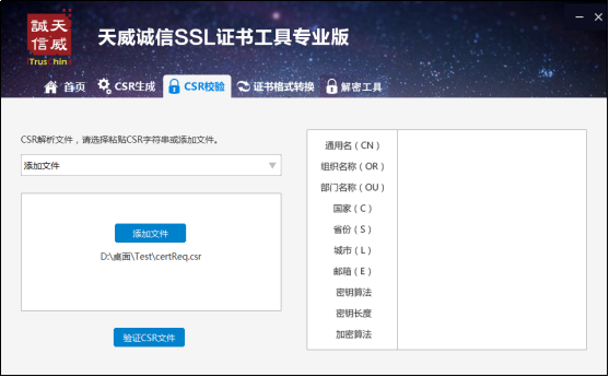 文件校驗:通過添加本地CSR文件并進(jìn)行驗證。