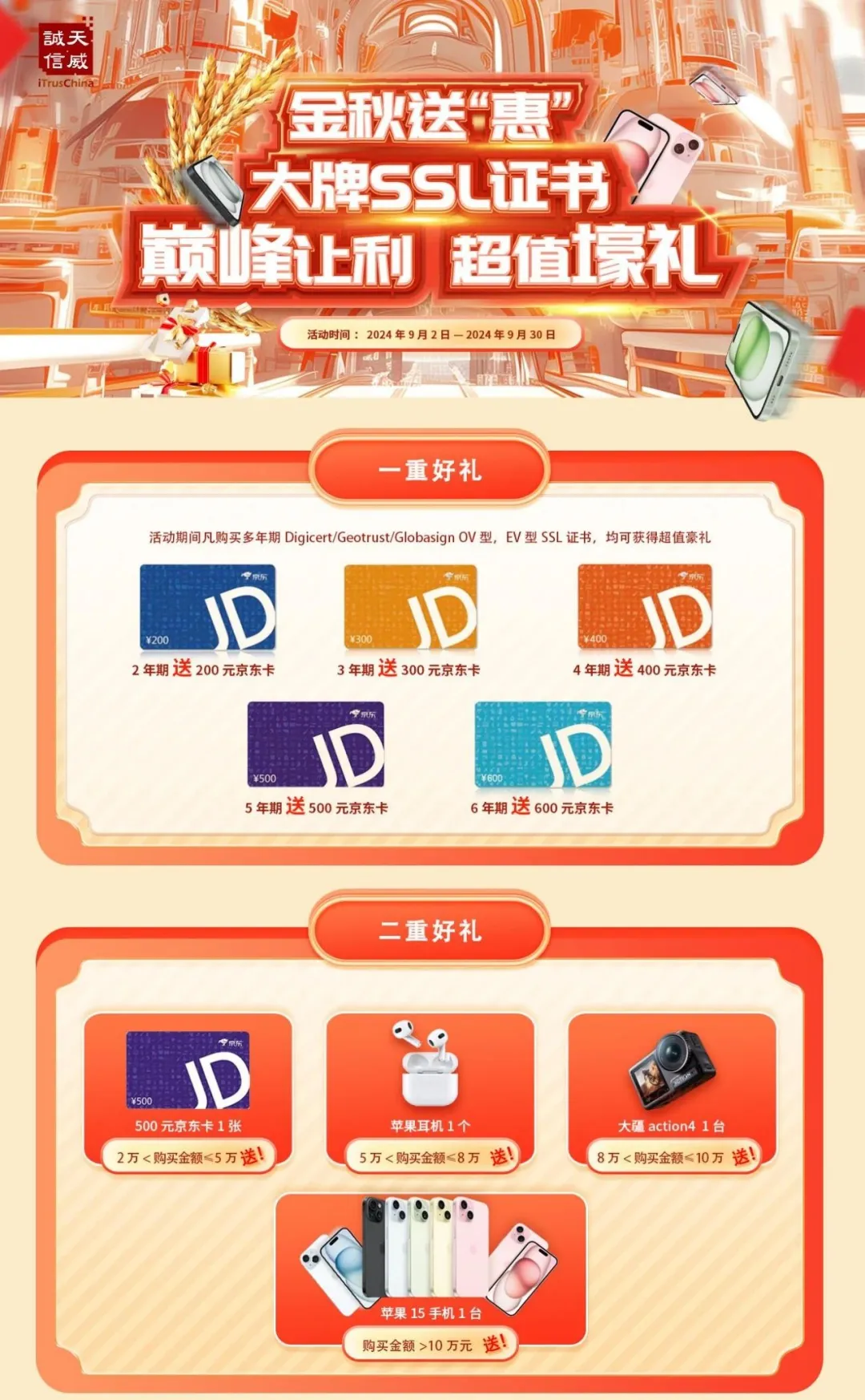 買SSL證書送iPhone15,天威誠(chéng)信金秋送“惠”來(lái)襲!