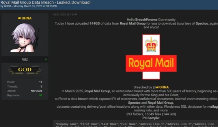 郵政集團(tuán)Royal Mail Group遭數(shù)據(jù)泄露,144GB敏感數(shù)據(jù)暴露